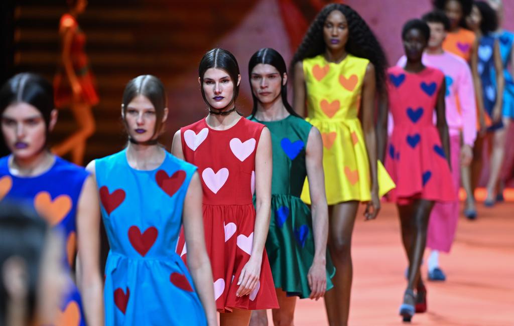 3月20日,模特在西班牙马德里时装周上展示Agatha Ruiz de la Prada品牌的2026/27秋冬新款时装。