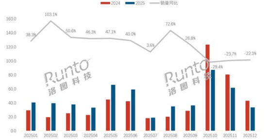 2025年中国扫地机器人线上市场月度销量及变化