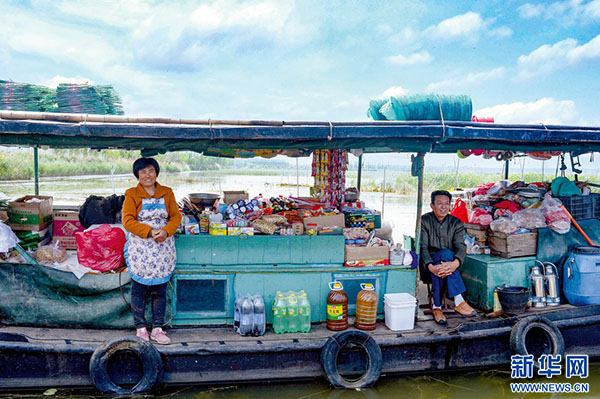 古运河上的超市人家(摄影:王斌,拍摄地:山东省济宁市微山县杨庄)