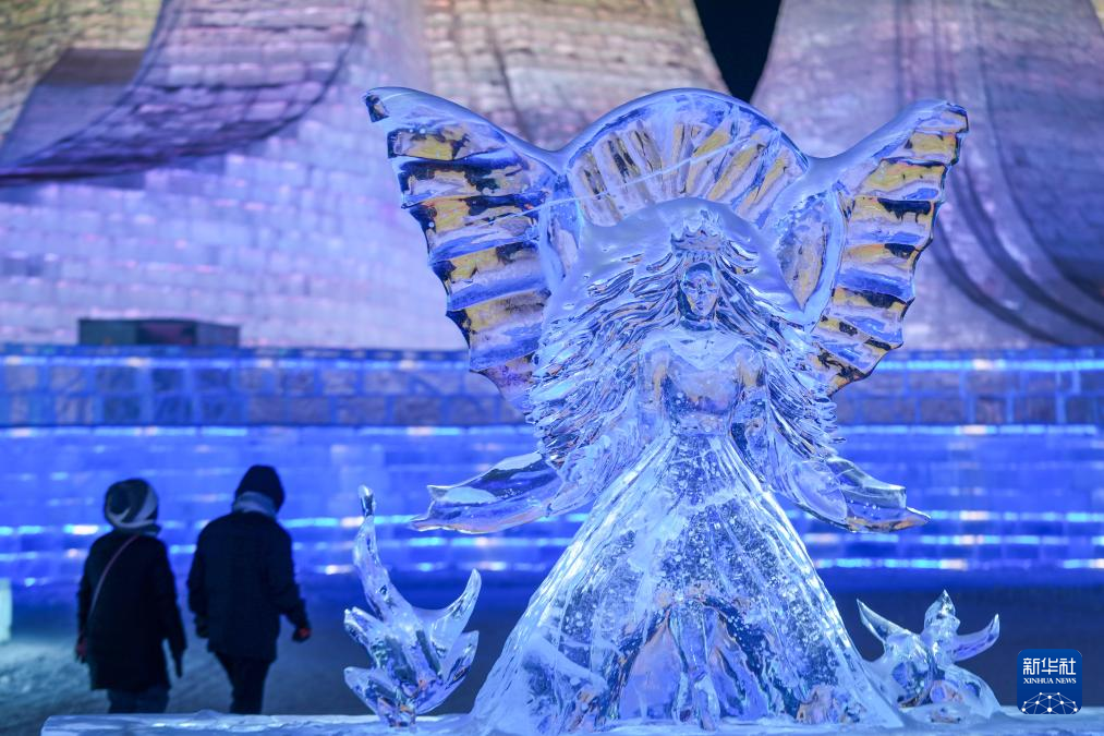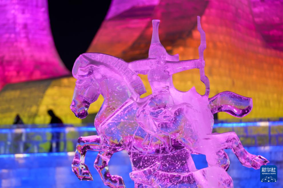 近日,一批冰雕新作在哈尔滨冰雪大世界亮相,与第37届中国·哈尔滨国际冰雕比赛作品及园区原有冰雕遥相辉映,共同点亮北国冬夜。