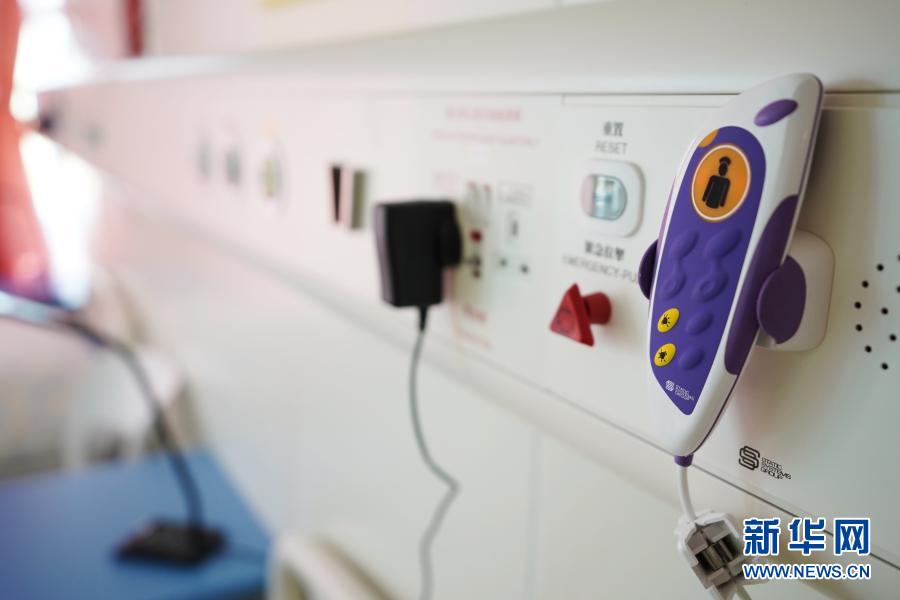 安心、溫馨,這是記者對(duì)病房的第一印象。一間病房設(shè)置6張床位和一個(gè)衛(wèi)生間,病床分兩排,每張床配有一把椅子、一個(gè)床頭柜和一張床上桌,床上鋪蓋一套淺色碎花寢具,床頭背靠的墻面上配備各類醫(yī)用檢測(cè)儀器,病房?jī)?nèi)還有智能生態(tài)儀器,方便醫(yī)護(hù)人員測(cè)試病患情況。