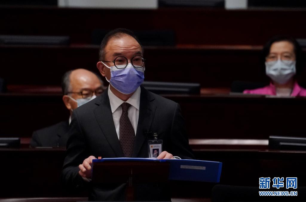 4月14日,香港特區(qū)政府政制及內(nèi)地事務(wù)局局長(zhǎng)曾國(guó)衛(wèi)在立法會(huì)會(huì)議上?!⌒氯A社記者 呂小煒攝