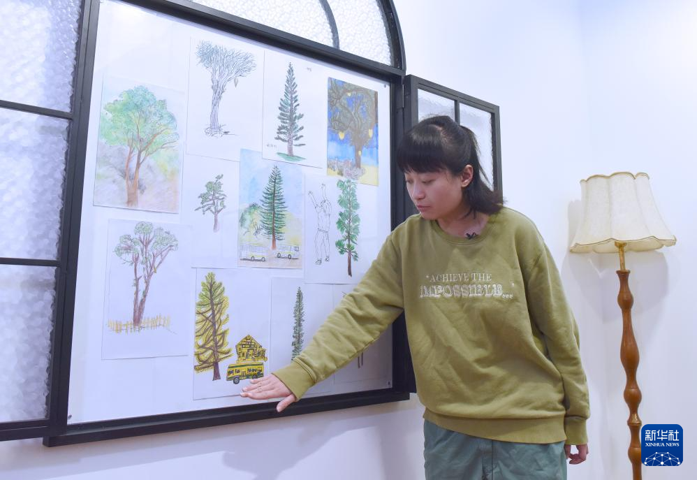 26岁的汤芷晴说,她最难忘画大树菠萝,因为“好新奇,为什么树可以长出果实”。调色遇到困难,她就一次次请教老师,现在放假也会主动走到空旷处写生。