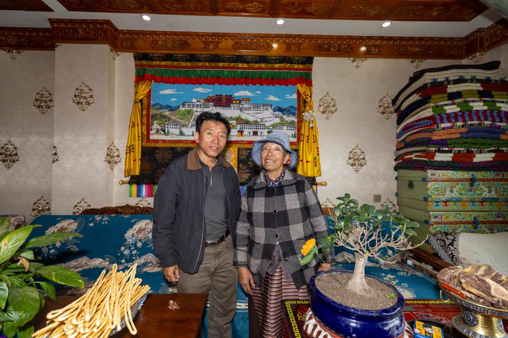 在拉萨以北约170公里的当雄县羊八井镇甲玛村,秋日的阳光洒在窗台上,70岁的仁青曲珍坐在自家宽敞舒适的客厅里。