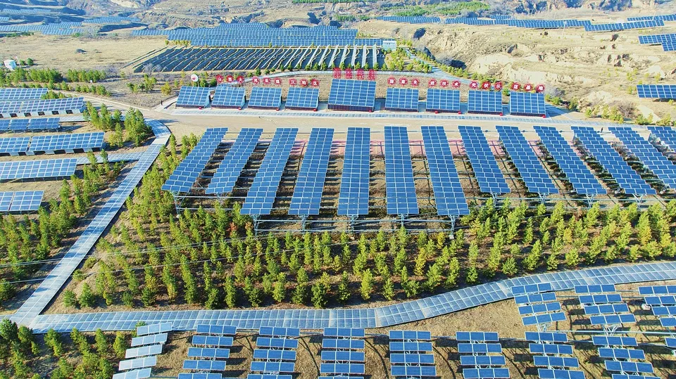 依山势而建的光伏电板。新华社记者 王怡静 摄