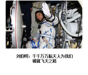 ??? 漫步太空、紅旗永駐。2008年9月27日16時43分,浩渺太空,敞懷相迎,我在戰(zhàn)友伯明、海鵬的協(xié)助和支持下,打開軌道艙艙門,邁出了中國人在茫茫太空中的第一步。在19分35秒的艙外活動中,我隨飛船一起飛過了9165公里,成為中國“飛得最高、走得最快”的人。然而,成功并不代表成熟,一切仍要從零開始。后續(xù)的空間站任務(wù)、登陸月球……路還很長,挑戰(zhàn)還很多,需要付出和努力的也還很多。對于我來說,沒有停歇的腳步,只有奮進(jìn)的號角。
