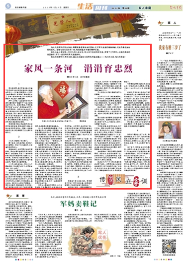 眼瞅著又快到建軍節(jié)了,昨個(gè)兒,我叫來大兒子敬朋,指著門楣上懸掛的“光榮之家”牌匾,對他說:“兒啊,把匾取下來,擦干凈,8月1日那天早上咱再掛上去,要讓早上的太陽,首先照亮它。因?yàn)椤褪窃奂掖鄠鳌Ⅴr血凝成的家風(fēng)啊!”(楊知雪/口述 謝學(xué)楓/整理)