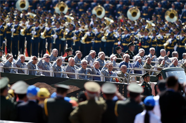 ????2015年9月3日,中國人民抗日戰(zhàn)爭暨世界反法西斯戰(zhàn)爭勝利70周年紀念大會在北京隆重舉行。這是抗戰(zhàn)老兵乘車方隊通過天安門廣場。新華社記者 王定昶 攝