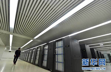 ????陽光和煦,在天津濱海新區(qū)的國家超級計算天津中心,一棟橘紅色大樓外墻上,“天河”兩個大字格外醒目。近千平方米的主機房內,由國防科技大學計算機學院研制的我國首臺千萬億次超級計算機系統(tǒng)——天河一號,排列成13行,猶如列隊受閱的方陣,正高速運轉。
