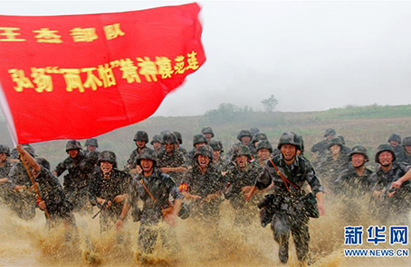 ????在一次對抗演習(xí)中,“王杰班”所在連隊(duì)官兵發(fā)起沖鋒(2015年6月25攝)。新華社發(fā)(趙聰 攝)