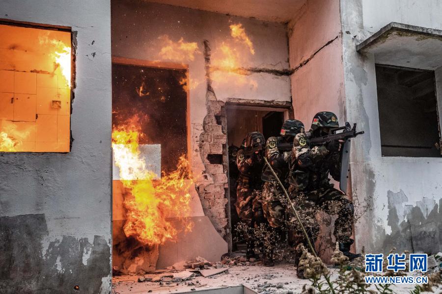 武警第一機動總隊某支隊特戰(zhàn)隊員在進行房間搜索訓(xùn)練(12月15日攝)。新華社發(fā)(常龍 攝)