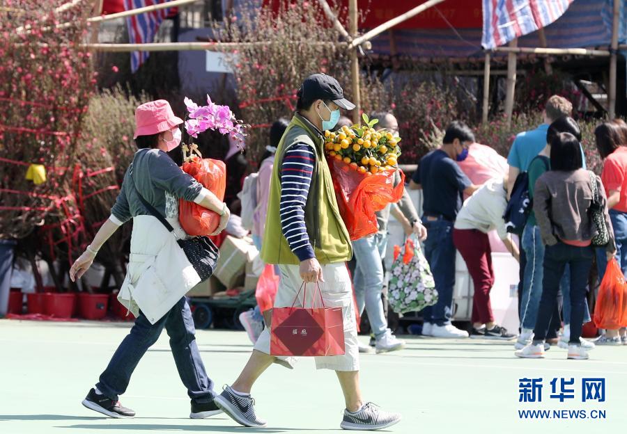2月6日,市民在香港維多利亞公園的年花銷售點(diǎn)選購鮮花。新華社記者 李鋼 攝