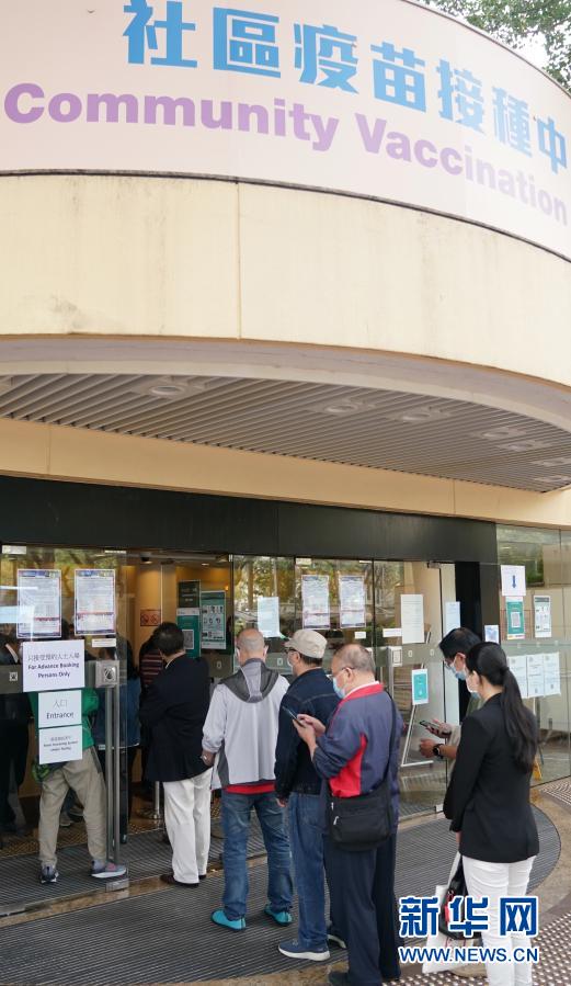 2月26日,在位于香港中央圖書館的社區(qū)疫苗接種中心,市民在入口處排隊(duì)。新華社記者 王申 攝