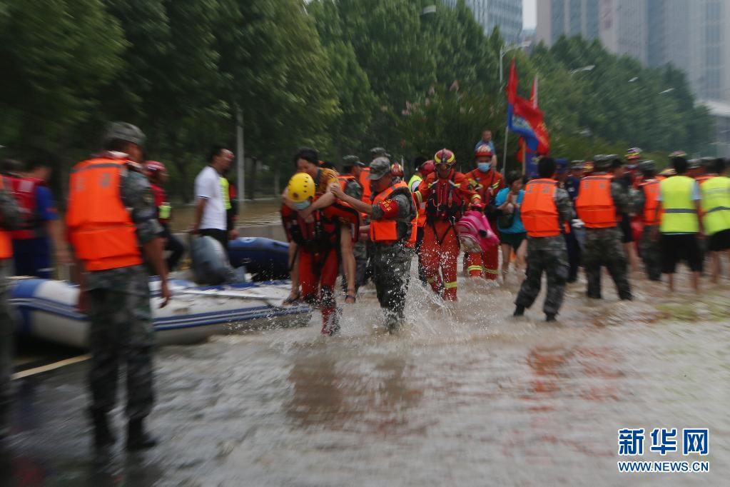 7月22日,在阜外華中心血管病醫(yī)院附近,救援人員轉移人員。