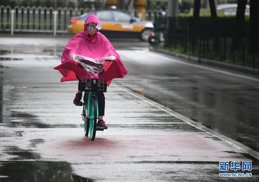 7月27日,市民在北京市海淀區(qū)的花園路騎行。