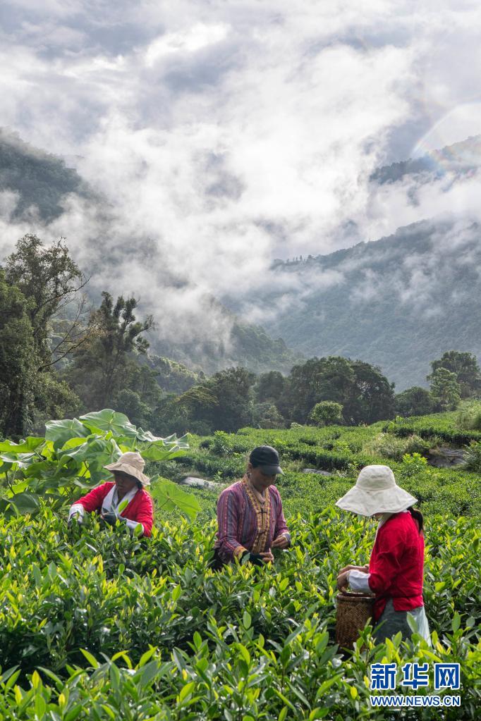 林芝市墨脫縣果果塘茶場(chǎng)的茶農(nóng)在采集茶葉(2020年9月19日攝)。