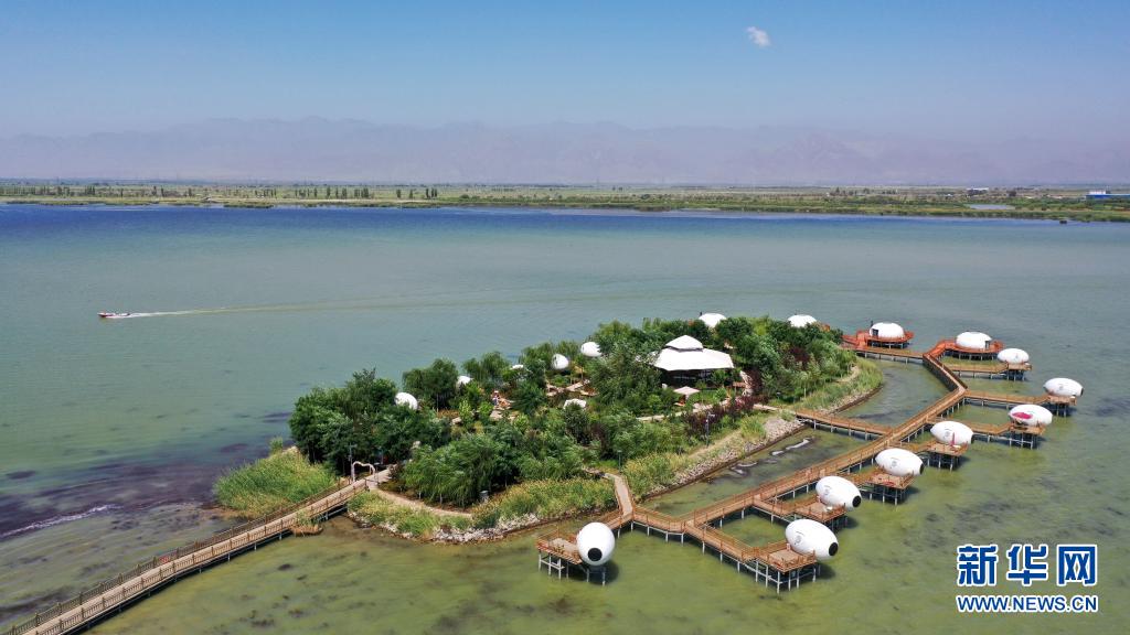 夏日時(shí)節(jié),地處寧夏石嘴山市平羅縣的沙湖景區(qū)內(nèi),葦綠沙黃、碧波蕩漾。