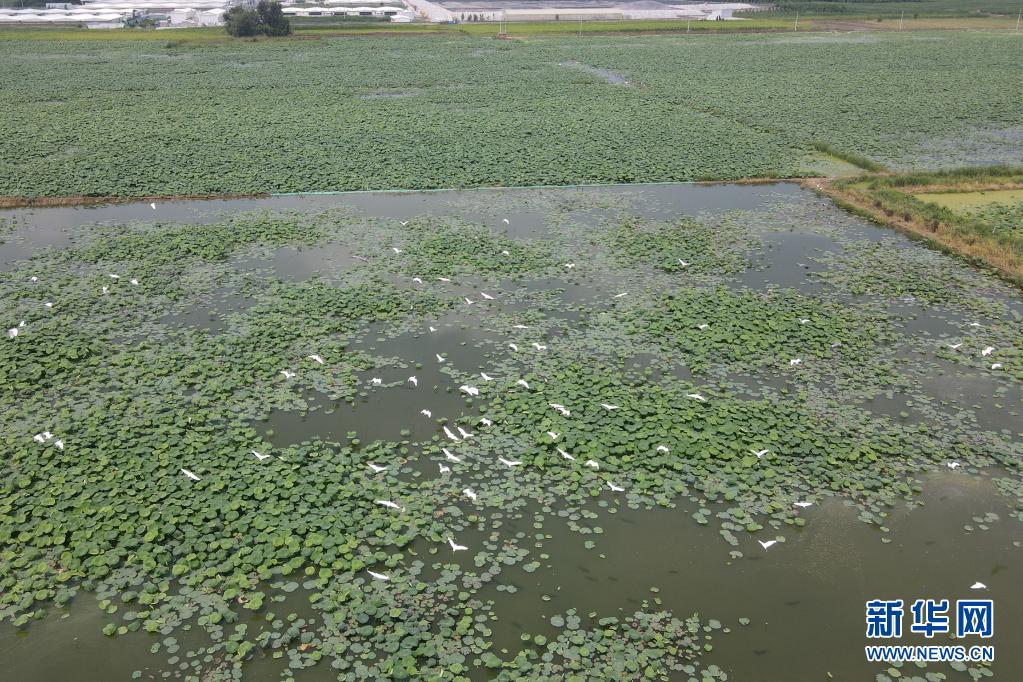 今年,河北省新河縣新河鎮(zhèn)白穴口村村集體和種植大戶合作種植蓮藕1000多畝。時(shí)值夏日,這里的藕田吸引了大量鷺鳥(niǎo)前來(lái)覓食、嬉戲,美麗的鷺鳥(niǎo)成為鄉(xiāng)間一道靚麗的風(fēng)景。