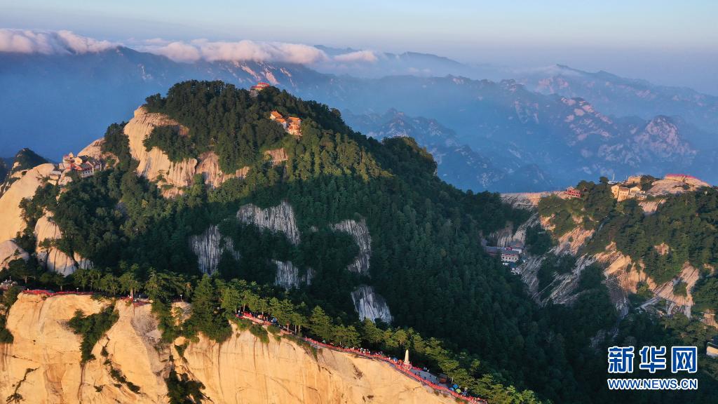 霞光映照下的華山(8月15日攝,無(wú)人機(jī)照片)。