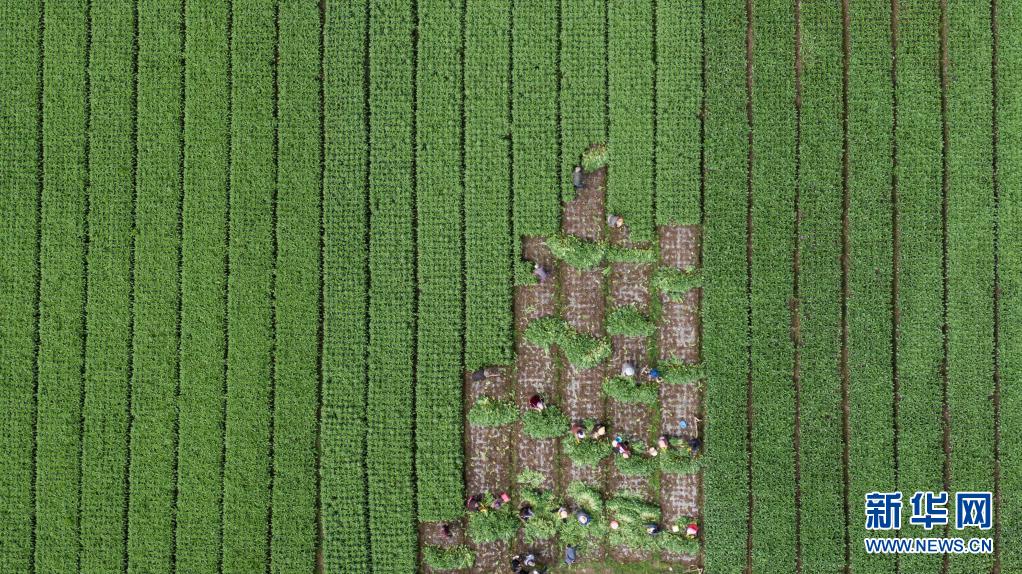 8月13日,在四川省阿壩藏族羌族自治州紅原縣刷經(jīng)寺鎮(zhèn)加當村,當?shù)厝罕娫谑崭罡咴n筍(無人機照片)。