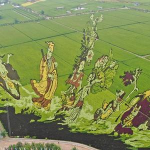 近日,遼寧省沈陽市沈北新區(qū)錫伯龍地創(chuàng)意農業(yè)產業(yè)園的稻田畫進入觀賞期,多種色彩的水稻組成稻田畫,吸引眾多游人前來觀光體驗。
