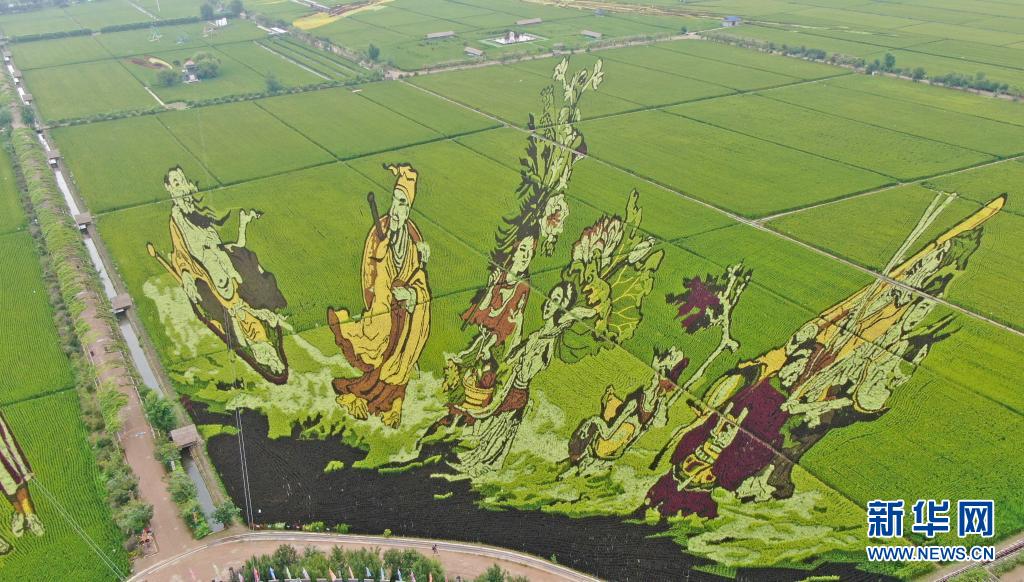 這是8月16日拍攝的稻田畫《八仙過海》(無(wú)人機(jī)照片)。