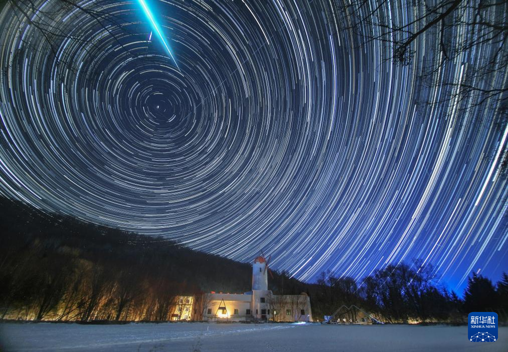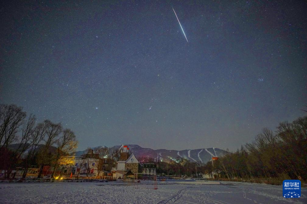 2025年12月14日在亚布力滑雪旅游度假区拍摄的双子座流星雨。