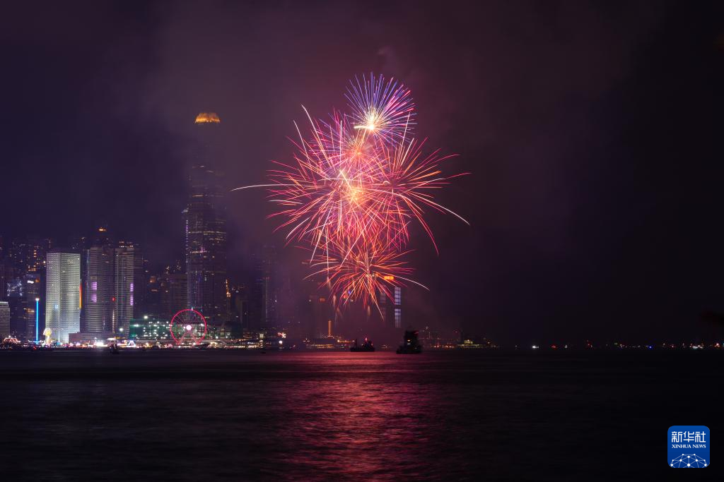2月18日,香港举办农历新年烟花汇演,欢庆新春佳节。