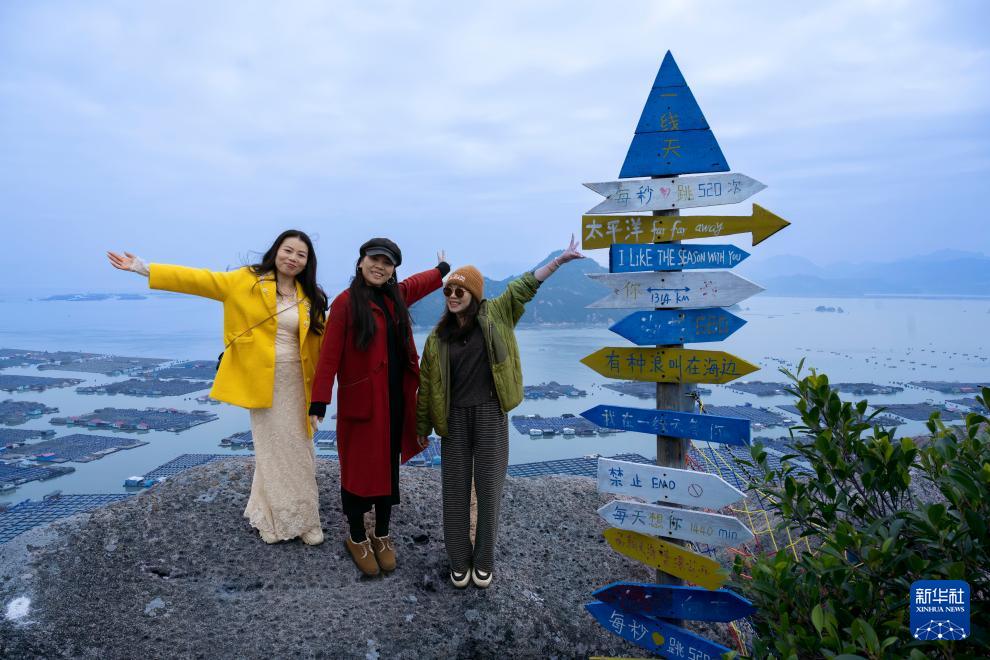 2月19日,游客在福建省罗源县鉴江镇一处景点打卡留影。