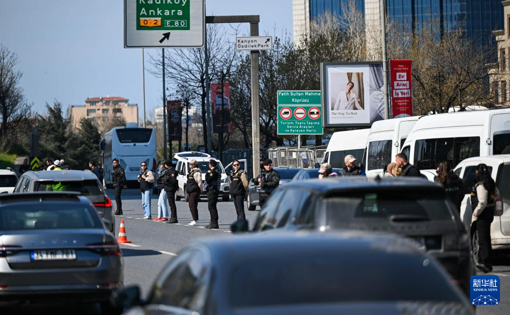 4月7日,在以色列驻土耳其伊斯坦布尔领事馆附近路口,交警在疏导车辆。