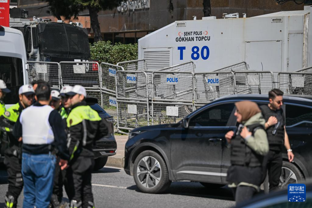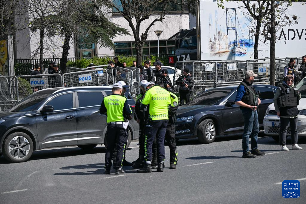 4月7日,警察在以色列驻土耳其伊斯坦布尔领事馆附近的街道上执勤。