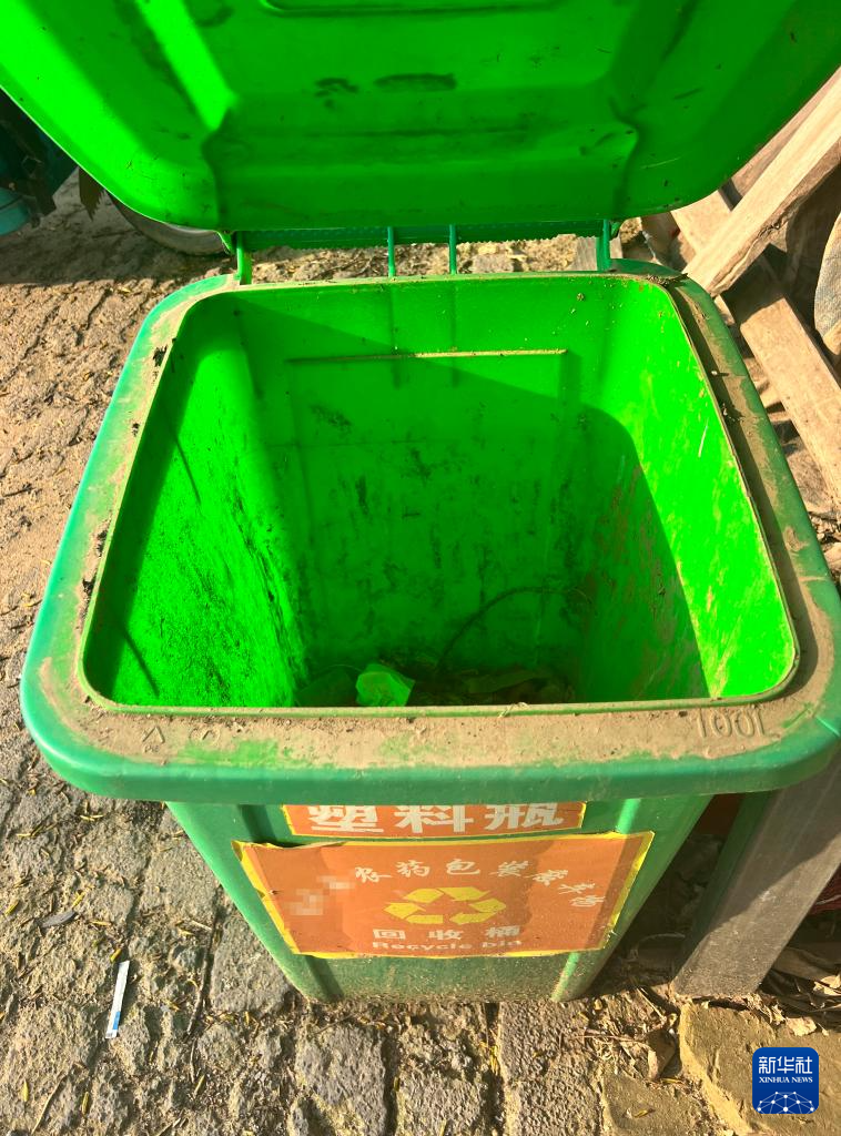 这是在中部某省一农资经销点拍摄的农资废弃物回收桶,目前已成垃圾桶(4月1日摄)。