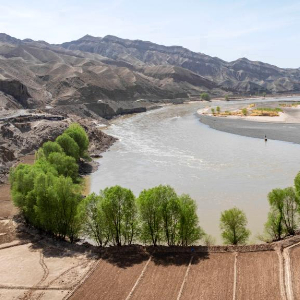 春日的宁夏中卫市南长滩村,黄河水蜿蜒流淌,岸边绿芽初绽,村里梨花竞相开放,勾勒出一幅生机盎然的黄河春景图。