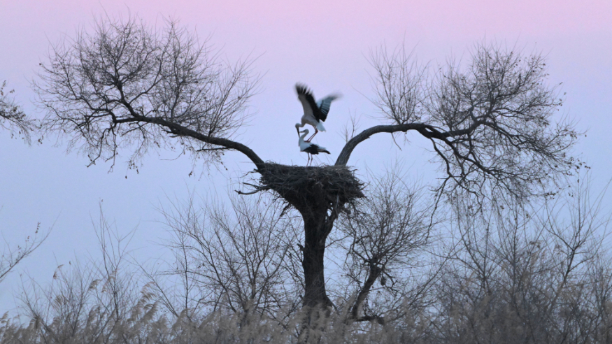 冰雪漸融春意動 候鳥歸飛入畫屏