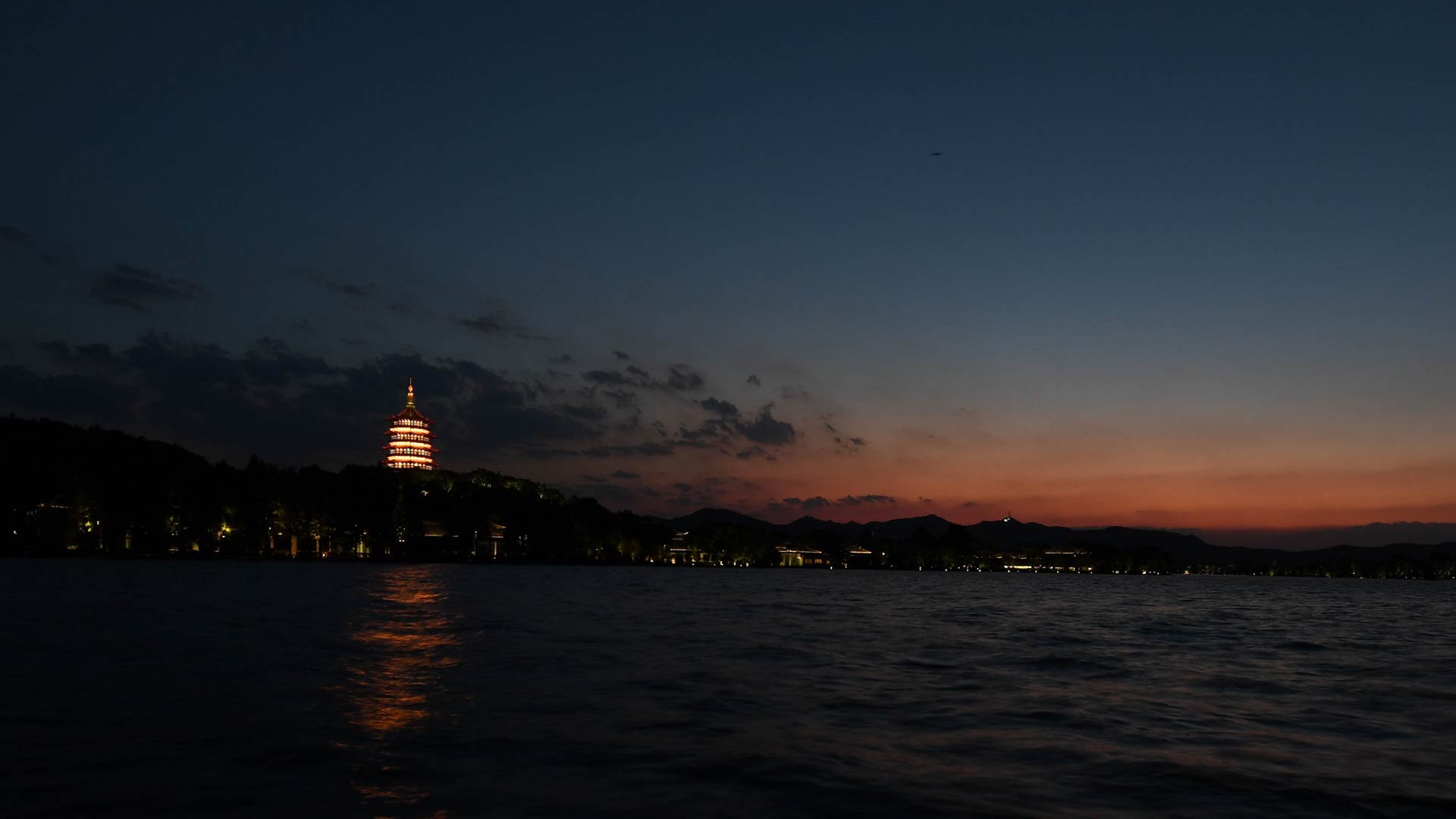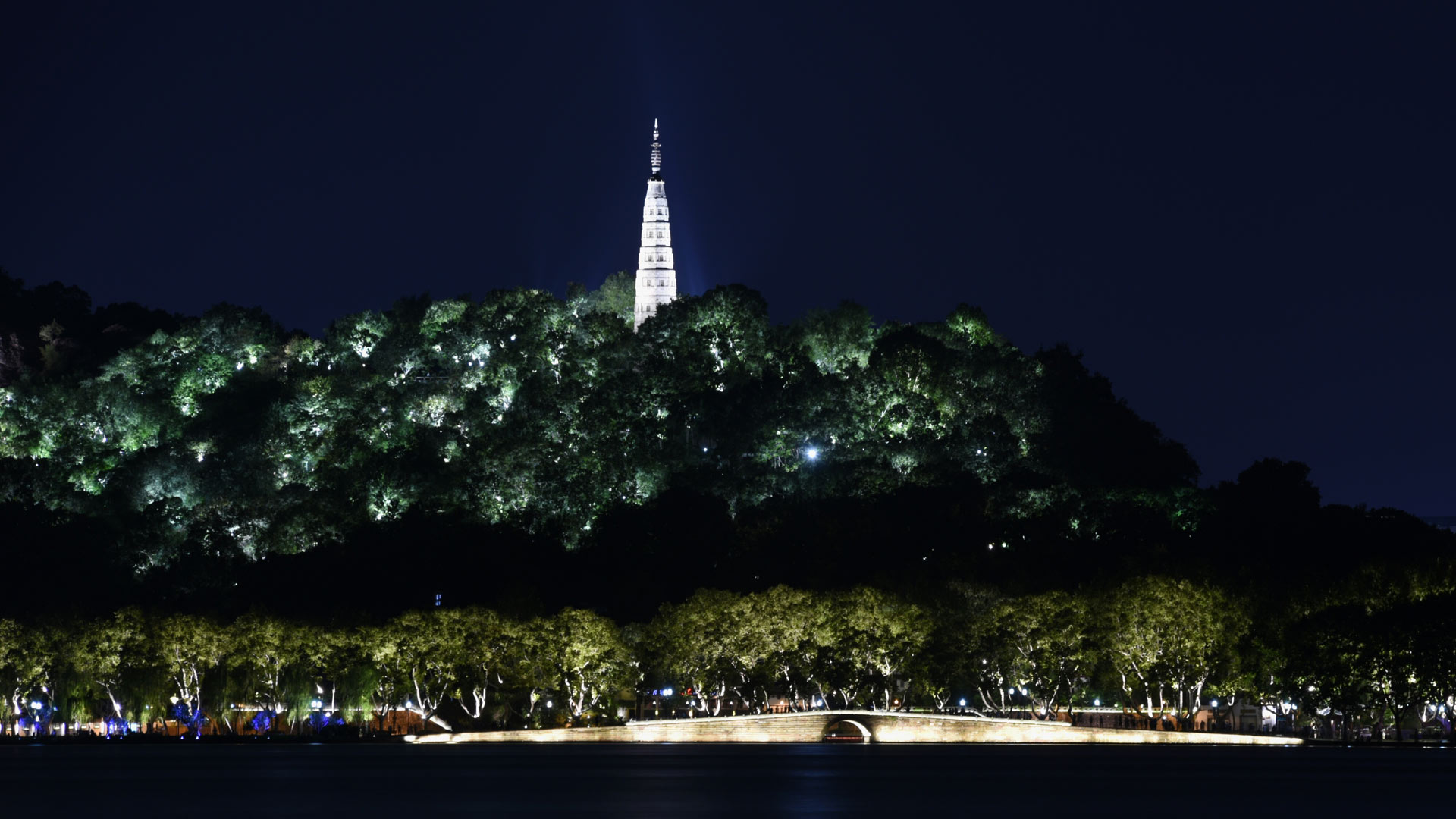 這是在杭州西湖拍攝的夜景(8月30日攝)。 新華社記者陳建力攝