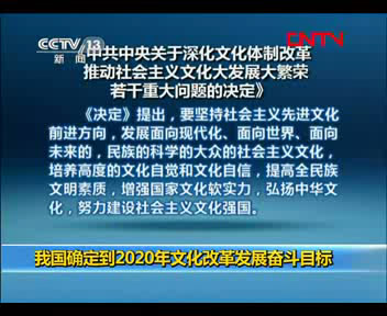 我國(guó)確定到2020年文化改革發(fā)展奮斗目標(biāo)