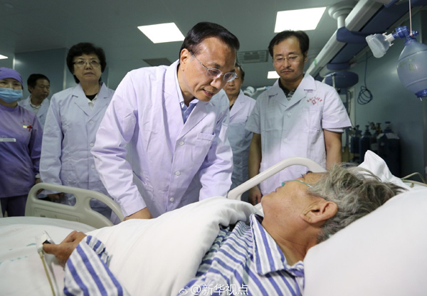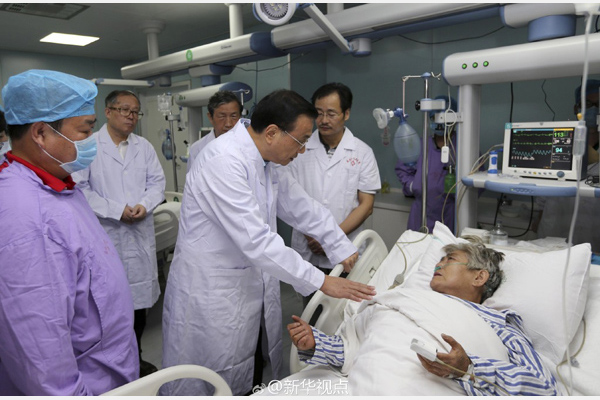 李克強看望獲救老人:我看著你被救上來的