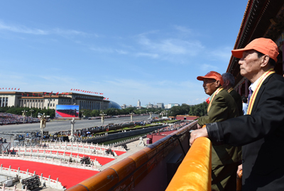 “九三閱兵”這天,李占瑞被安排在天安門(mén)城樓的第一排。雖然經(jīng)過(guò)了前兩天的車(chē)馬勞頓和活動(dòng)安排,李占瑞依舊神采奕奕?!疤彀查T(mén)第一排有我的座位,還寫(xiě)著我的名字。我扶著欄桿,上面下面都看見(jiàn)了,看的很清楚。開(kāi)始是直升機(jī),有200多架,后來(lái)是戰(zhàn)斗機(jī)、轟炸機(jī)、運(yùn)輸機(jī),還有無(wú)人駕駛飛機(jī)。我都看到了。還有導(dǎo)彈,無(wú)數(shù)的導(dǎo)彈。這都是國(guó)家的國(guó)防武器,可以防止敵人侵略呀!”李占瑞爬滿(mǎn)褶皺的臉上閃著光。