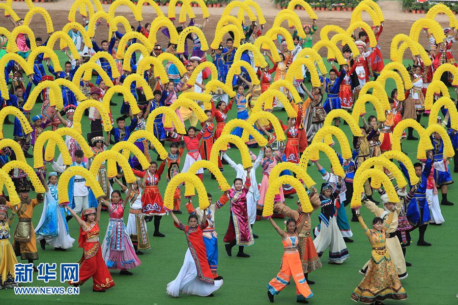 8月8日,內(nèi)蒙古自治區(qū)成立70周年慶祝大會在呼和塔拉內(nèi)蒙古少數(shù)民族群眾文化體育運(yùn)動中心舉行。圖為群眾行進(jìn)表演。新華網(wǎng)記者 陳杰 攝?