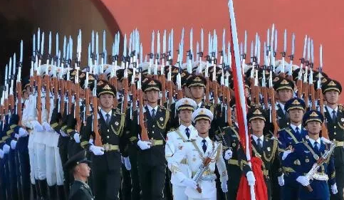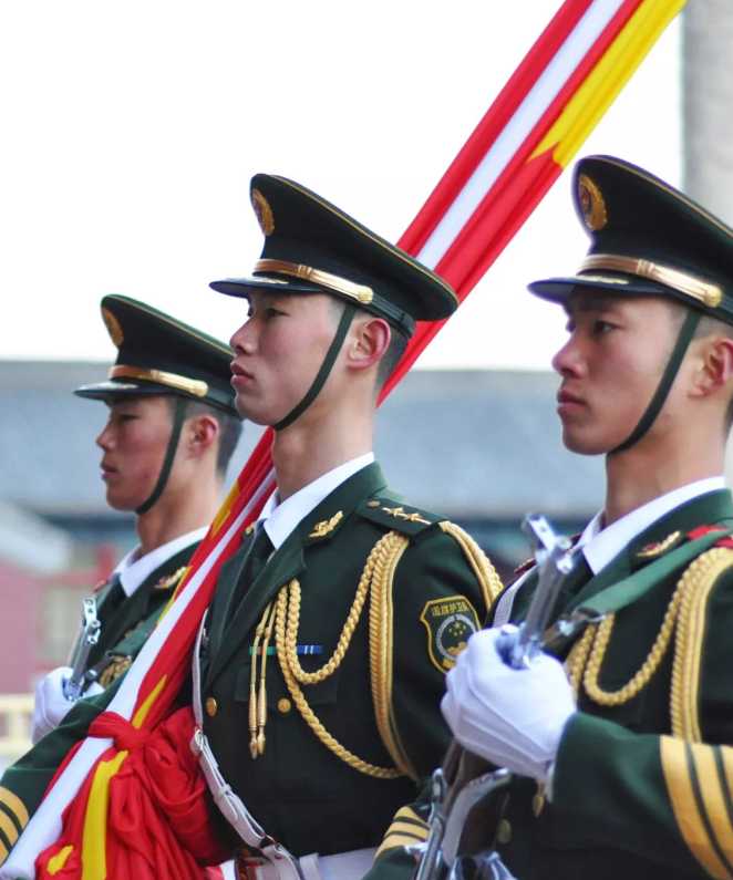國(guó)旗護(hù)衛(wèi)隊(duì)在護(hù)送國(guó)旗走向升旗臺(tái)