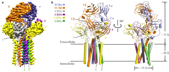 對此,文章審稿人的評價是:“該研究工作代表了細(xì)胞適應(yīng)性免疫的分子機理研究的一個重要里程碑。通過闡明第一個在膜上組裝的T細(xì)胞受體和其CD3共受體的結(jié)構(gòu),極大地增加了我們對T細(xì)胞識別抗原反應(yīng)的激活機制的理解?!?/p>