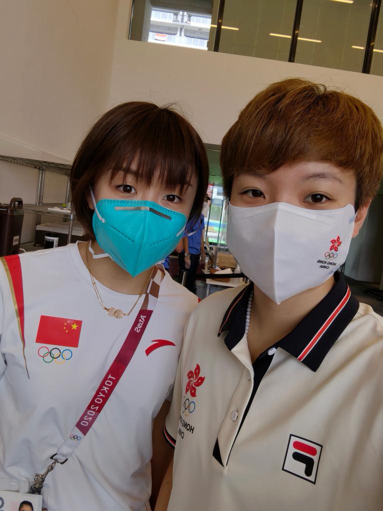 杜凱琹(右)與中國隊運動員陳夢合影。受訪者供圖