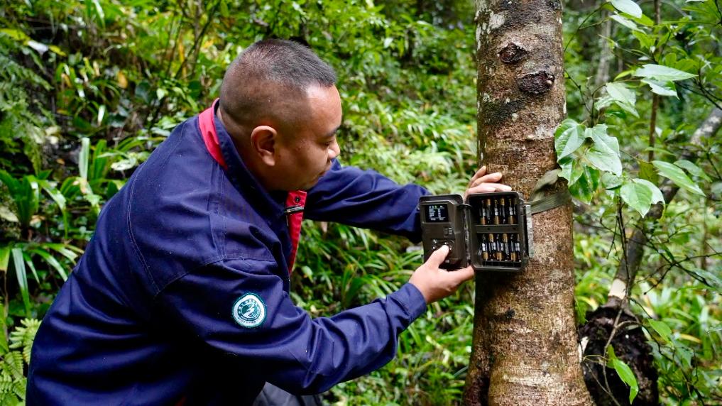 蒋邦琼为红外相机更换电池。新华社发(焦国斌摄)