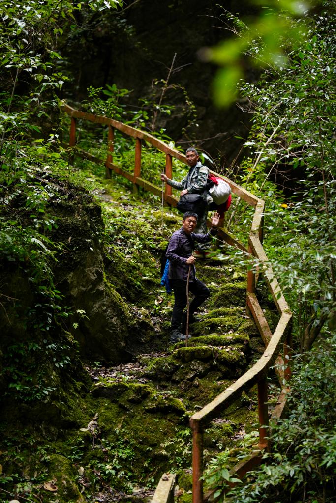 蒋邦琼和同事们穿梭在崎岖山道上