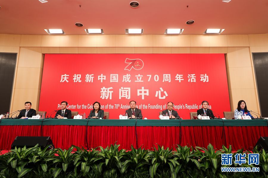 9月25日,慶祝中華人民共和國成立70周年活動新聞中心在北京梅地亞中心二層新聞發(fā)布廳舉辦第二場專題集體采訪活動。圖為新聞發(fā)布會現(xiàn)場。新華網(wǎng)記者 焦鵬 攝