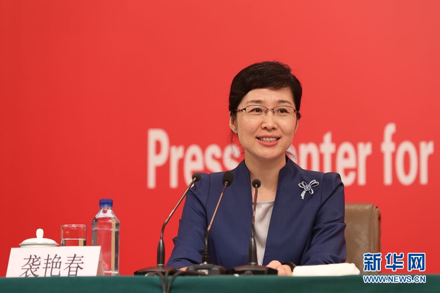 9月29日,慶祝中華人民共和國成立70周年活動新聞中心在北京梅地亞中心二層新聞發(fā)布廳舉辦第五場新聞發(fā)布會。圖為慶祝中華人民共和國成立70周年活動新聞中心負責(zé)人襲艷春。新華網(wǎng)記者 郭小天 攝