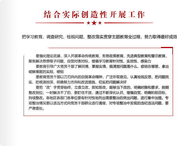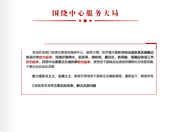 • 空談?wù)`國,實干興邦。抓落實、求實效,是我們黨治國理政一以貫之的理念與行動,也是衡量主題教育成效的重要標(biāo)尺。我們一定要以“四個到位”抓實主題教育,以釘釘子精神狠抓落實,確保主題教育取得扎扎實實的成效。 [詳細(xì)]