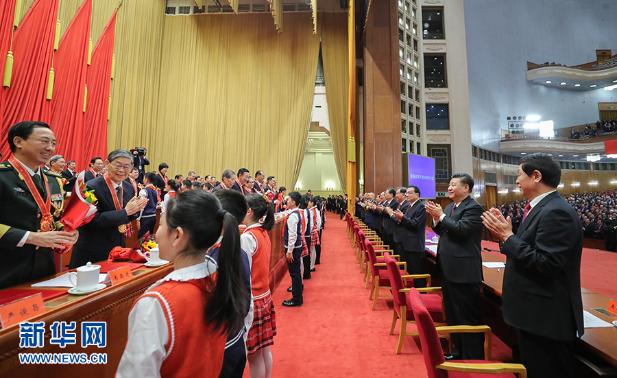12月18日,慶祝改革開放40周年大會在北京人民大會堂隆重舉行。中共中央總書記、國家主席、中央軍委主席習(xí)近平在大會上發(fā)表重要講話。這是習(xí)近平等鼓掌向受表彰人員表示祝賀。 新華社記者 鞠鵬 攝