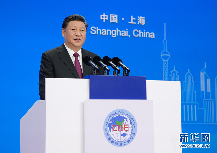 2018年11月5日,習(xí)近平在上海出席首屆中國(guó)國(guó)際進(jìn)口博覽會(huì)開幕式并發(fā)表題為《共建創(chuàng)新包容的開放型世界經(jīng)濟(jì)》的主旨演講。新華社記者 李學(xué)仁 攝