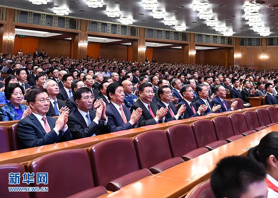 9月29日,慶祝中華人民共和國成立70周年大型文藝晚會《奮斗吧 中華兒女》在北京人民大會堂舉行。習近平、李克強、栗戰(zhàn)書、汪洋、王滬寧、趙樂際、韓正、王岐山等黨和國家領(lǐng)導人同4000多名觀眾一起觀看演出。 新華社記者 謝環(huán)馳 攝